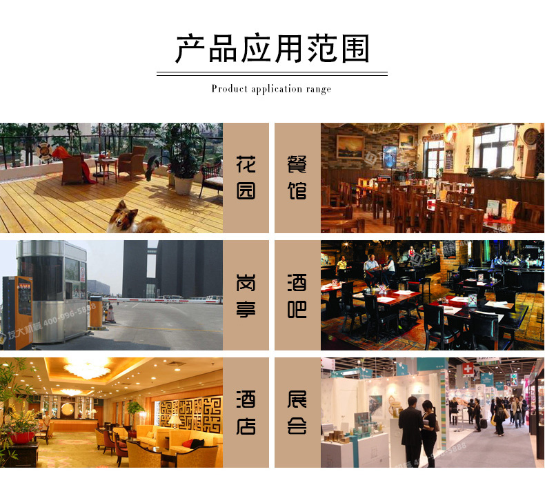 該產(chǎn)品適用于工廠車(chē)間、辦公室、酒店、酒吧、飯店、餐廳、大廳、展廳、咖啡店.天井、步行街、站亭、運(yùn)動(dòng)館、步行街、大型會(huì)議室及戶外休閑等空氣流通好的場(chǎng)所。