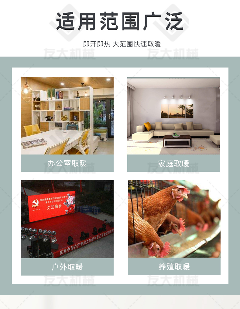本產(chǎn)品是我公司廣泛吸取國內(nèi)外多種暖風(fēng)機(jī)產(chǎn)品的成功經(jīng)驗(yàn),精心研制而成的,能使您的居室溫暖。便攜式空氣暖風(fēng)機(jī)可根據(jù)適用場(chǎng)所不同進(jìn)行劃分,適用于大型結(jié)構(gòu)工程、建筑工地、道路維修、停車場(chǎng),以及房屋完工工程、公寓和公共設(shè)施。它們啟動(dòng)的及時(shí)性 和使用的隨時(shí)性是其優(yōu)勢(shì)所在,而且還能省去安裝其他高費(fèi)用設(shè)備的麻煩。