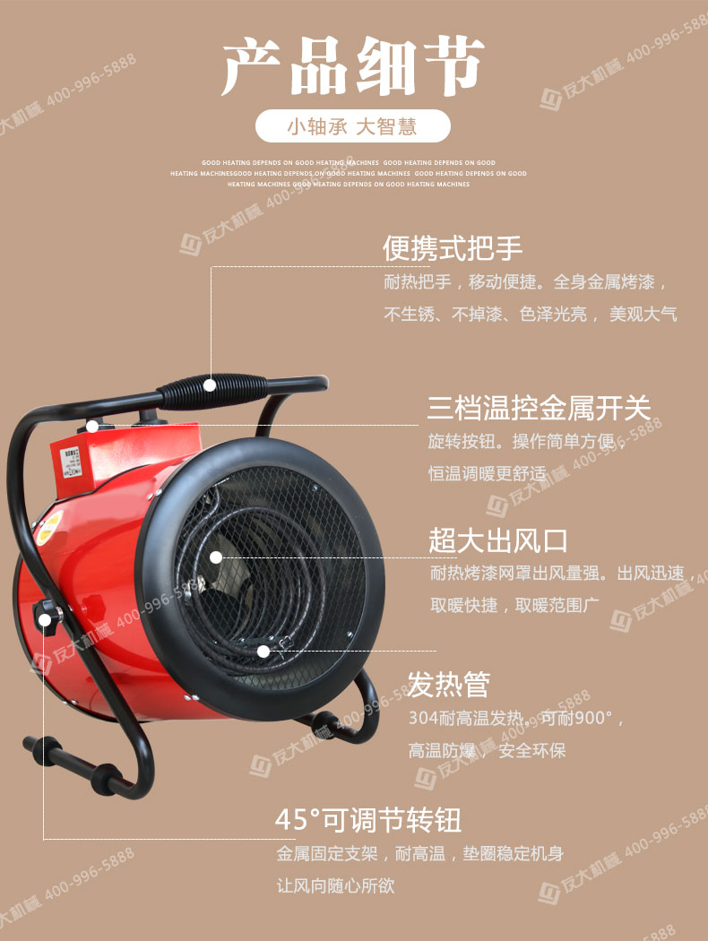 適用范圍:☆養(yǎng)殖、廠房、車間、建筑工地、辦公室、宿舍等局部取暖設(shè)施。 ☆對(duì)禽畜取暖,育雛取暖,花卉養(yǎng)殖,大棚蔬菜瓜 果,車間,展會(huì)人為取暖等進(jìn)行使用 ☆任何需要加溫的場(chǎng)所。